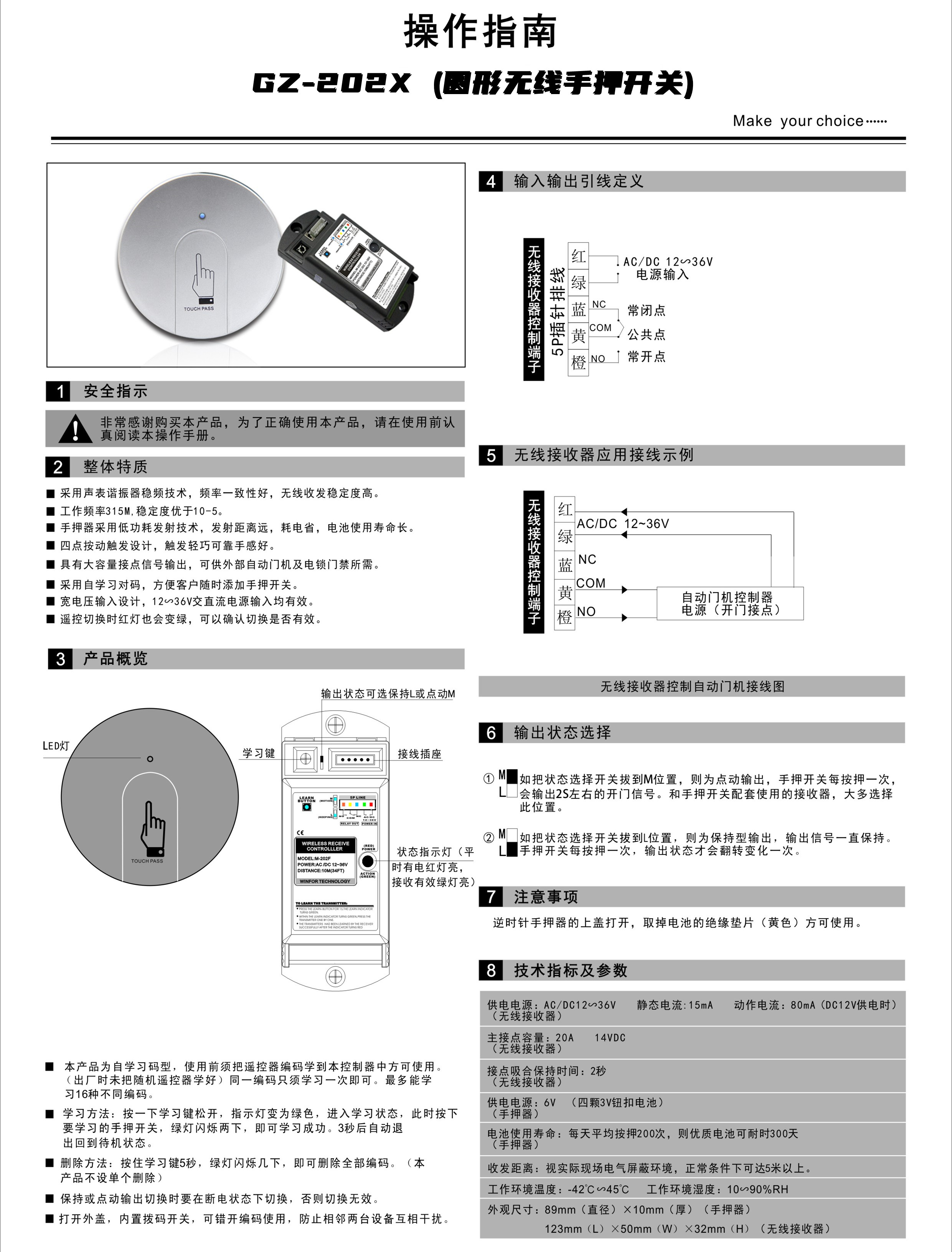 圆形无线手押开关GZ-202X