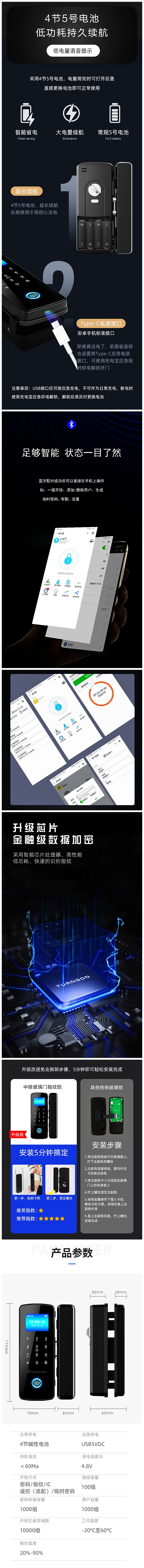盖卓508玻璃门指纹锁免开孔