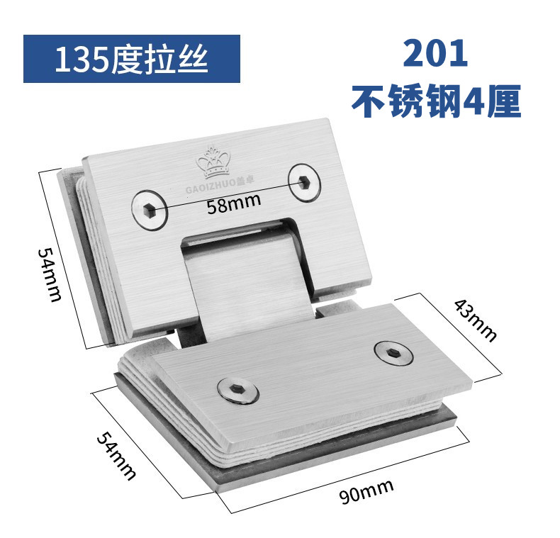 淋浴房卫生间玻璃门夹合页铰链90度单(3孔)